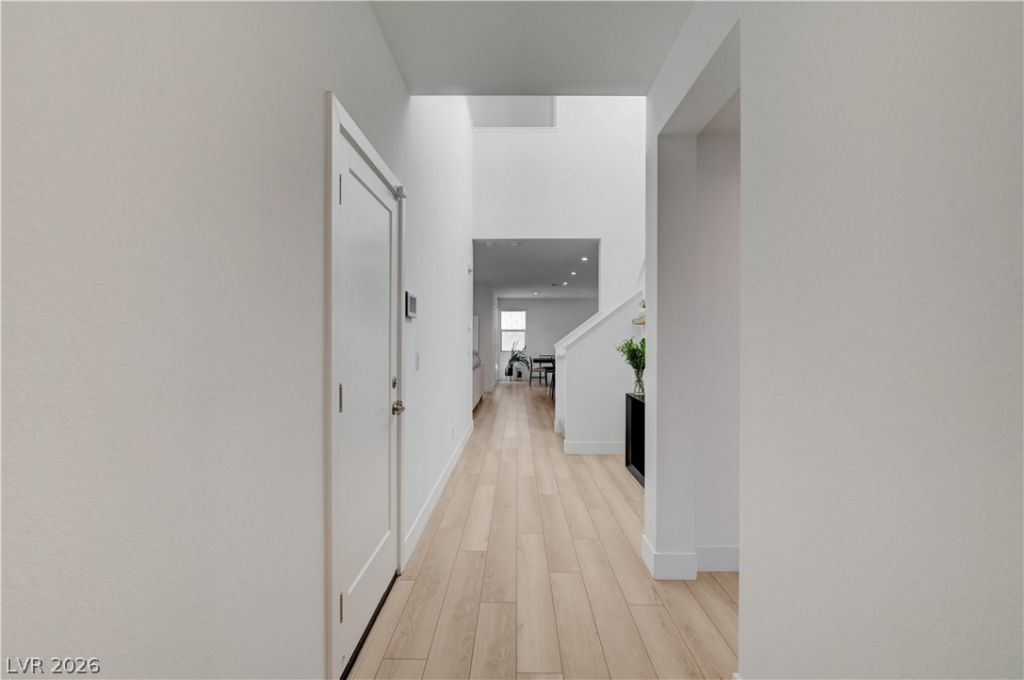 Welcome to this beautiful, modern contemporary home located in the Inspirada community. The open-concept layout seamlessly connects the kitchen, dining, and living areas, creating a bright and inviting space perfect for entertaining. The kitchen features a spacious quartz waterfall island and a large pantry with a hidden door for a sleek, modern look. The living room features a multi-panel sliding door that opens to the backyard, creating great indoor-outdoor living. The backyard is finished with pavers and clean, low-maintenance landscaping. A bedroom and full bathroom are conveniently located downstairs. Upstairs offers a spacious loft with high ceilings and a generous primary suite with a large walk-in closet. Additional features include a water softener, a drinking water filtration system, and an alarm system that will transfer to the new owners.
