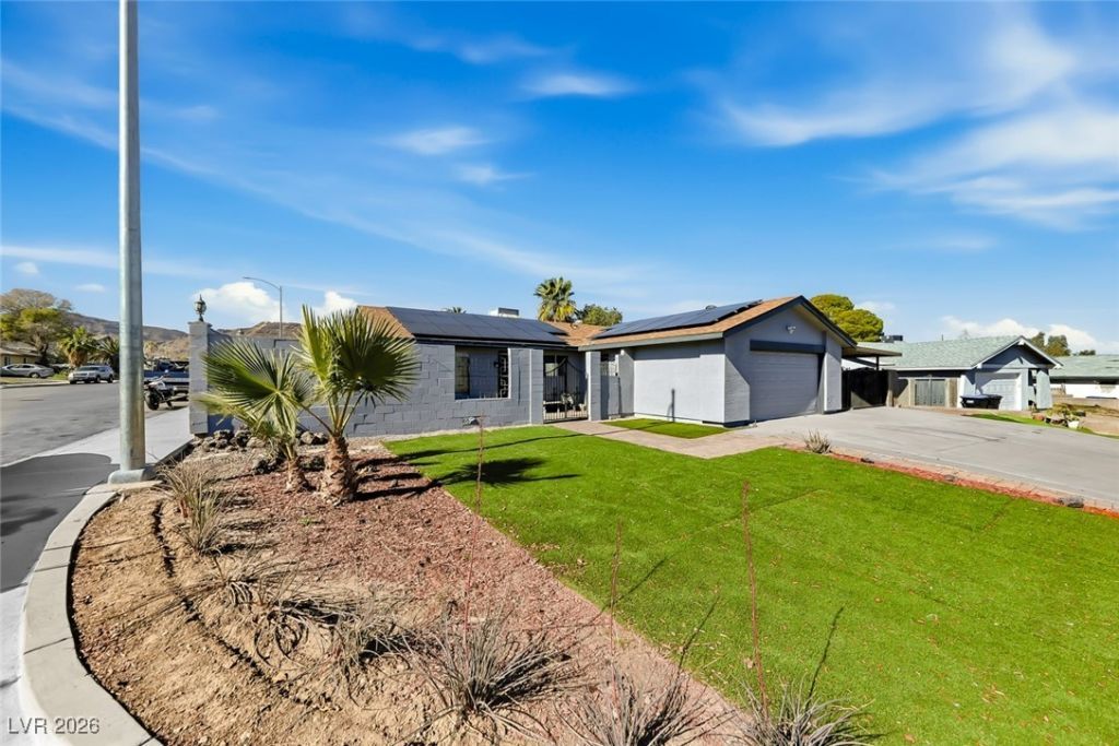Single-story home situated on a nearly 8,000-square-foot corner lot. Features 4 bedrooms and 2 baths, a spacious yard with a covered patio, and possible RV or boat parking. Includes a 2-car attached garage with automatic door opener, a front living room, a large eat-in kitchen, and an additional den. Contract is 2014. New solar panels installed in Jan 2025. No homeowners association.